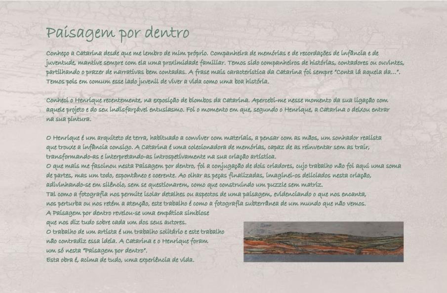 “A Paisagem por Dentro é a conjugação destes dois criadores, cujo o trabalho não é aqui uma soma das partes, mas um todo, espontâneo e coerente. … Esta obra é, acima de tudo, uma experiência de vida.”